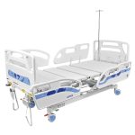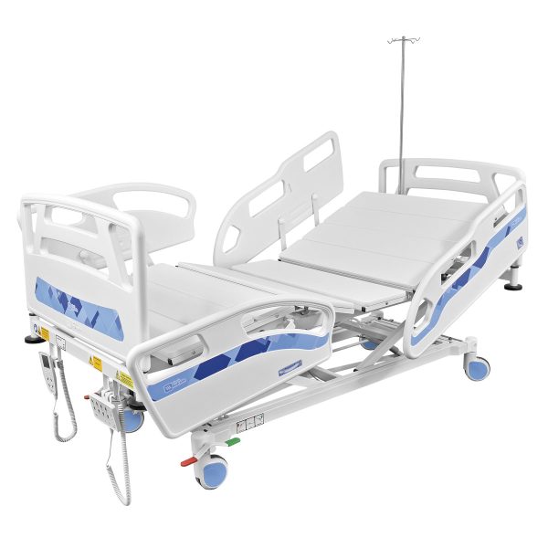 – MOVIMENTOS/MOTORES: dotado de 4 motores elétricos que executam os movimentos fowler, semi-fowler, cabeceira, dorso, pernas, sentado, cadeira cardíaca, vascular, flexão, joelhos, poltrona, auto contorno, elevação do leito, trendelemburg e reverso de trendelemburg (proclive), sendo 2 instalados sob o estrado e 2 instalados na base, dotados de fim de curso, para proteção, blindados, alimentação elétrica 127-240 Vca – 50/60hz, com unidades de bateria 24 v 1,2 ah, recarregáveis. Nível de proteção contra penetração de água IPX 6.
