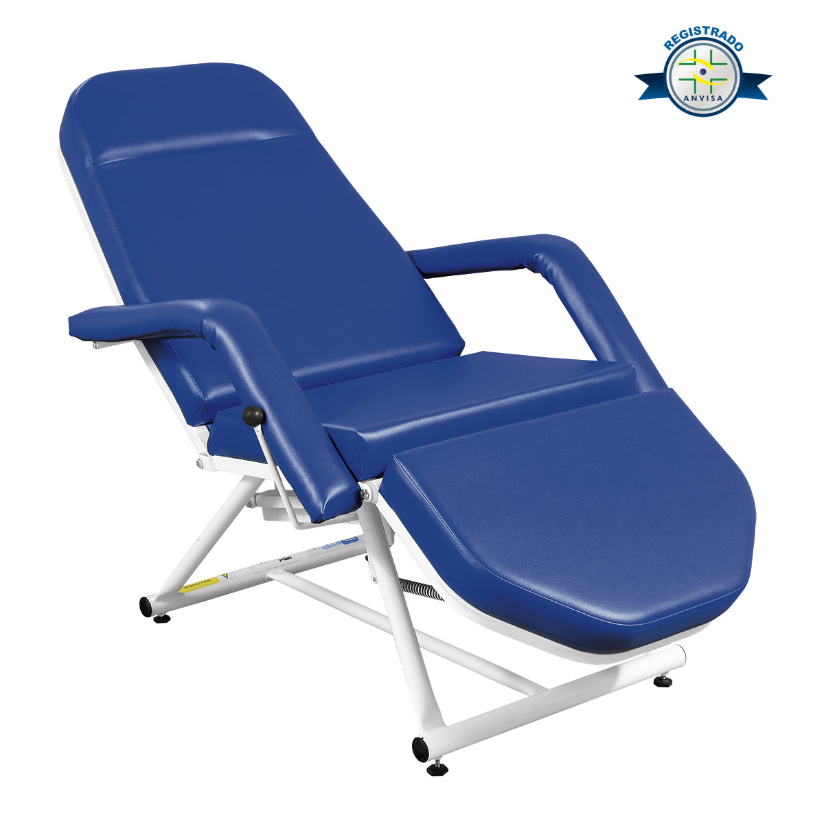 Poltrona construída com material de alta resistência, reclinável através de pistão a gás. Própria para acompanhante. Capacidade para até 250 kg. Aprovado pela ANVISA.