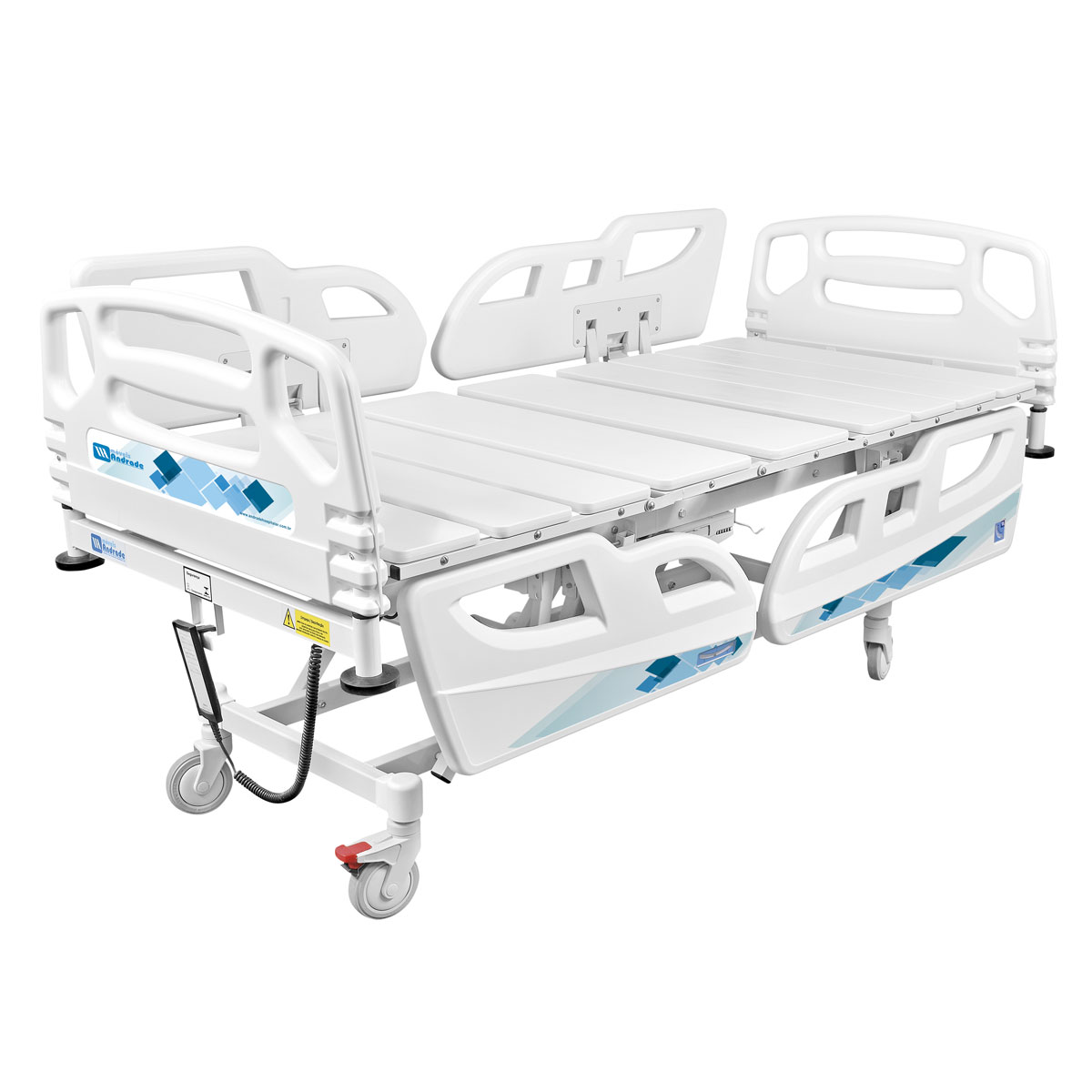 Cama fabricada com material de alta resistência garantindo maior durabilidade ao produto. Todos os movimentos são comandados por três motores e realizados através de controle remoto a fio. Possui grades retráteis com trava proporcionando segurança ao paciente. Aprovado pela ANVISA.