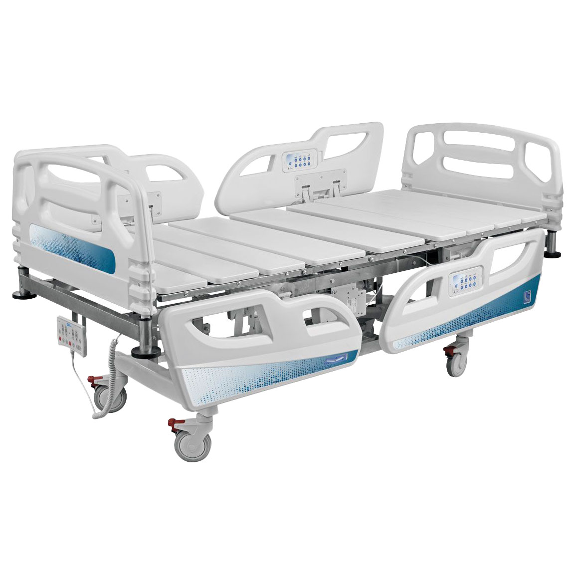 – MOVIMENTOS/MOTORES: dotado de 4 motores elétricos que executam os movimentos fowler, semi-fowler, cabeceira, dorso, pernas, sentado, cadeira cardíaca, vascular, flexão, joelhos, poltrona, auto contorno, elevação do leito, trendelemburg e reverso de trendelemburg (proclive), sendo 2 instalados sob o estrado e 2 instalados na base, dotados de fim de curso, para proteção, blindados, alimentação elétrica 127-240 Vca – 50/60hz, com unidades de bateria 24 v 1,2 ah, recarregáveis. Nível de proteção contra penetração de água IPX 6.