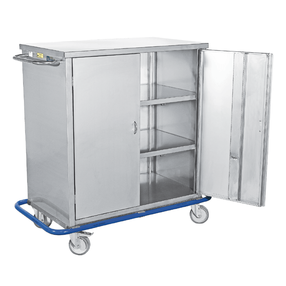 – Construído em chapa de aço inox (com opcional em inox AISI 300, AISI 304, AISI 310S, AISI 316, AISI 321, AISI 400, AISI 410, AISI 410S, AISI 420 ou AISI 430) de 0,8 mm com prateleiras.